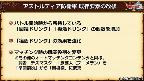 オートマッチング時の職業役割が変更されます。賢者・デスマスター・旅芸人(ブーメラン)が、「準回復役」から「回復役」になります。