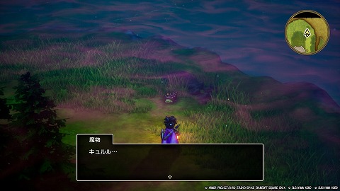夜にネクロゴンドのほこらに入ると建物の北東に、はぐれモンスター「スライムつむり」がいました。スライムつむりに近づくと、保護することができました。