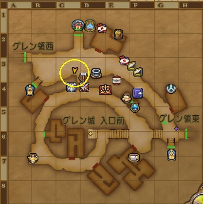 グレン城下町の場合は、グレン城下町C3にミローレがいました。