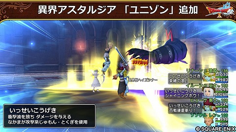 ユニゾン「いっせいこうげき」を使うと、決められた特技で全員で攻撃します。