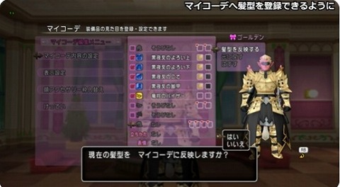 マイコーデに「かみがた」を登録できるようになります。マイコーデに登録しておけば、衣装に合わせた髪型に変更できますね。