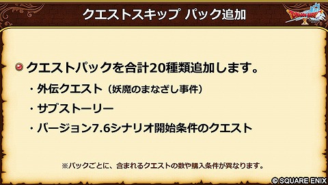 バージョン7.6前期で、クエストスキップできるクエストパックが追加されます。